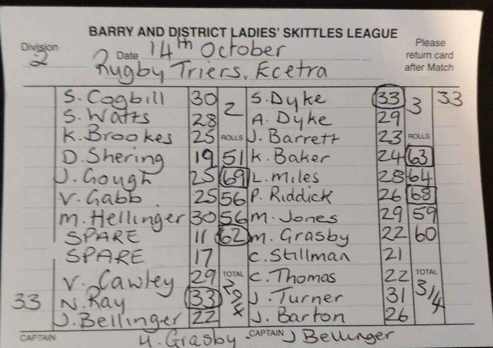 | Etcetera | Rugby Triers | 02/03/2026 | Awaiting Scores | League Total - 6 Points Rolls Total - 27 Points | |