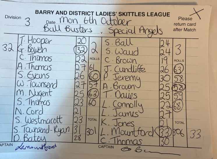 | Special Angels | Dolly Mixtures | 08/12/2025 | Awaiting Scores | League Total - 14 Points Rolls Total - 55 Points | |